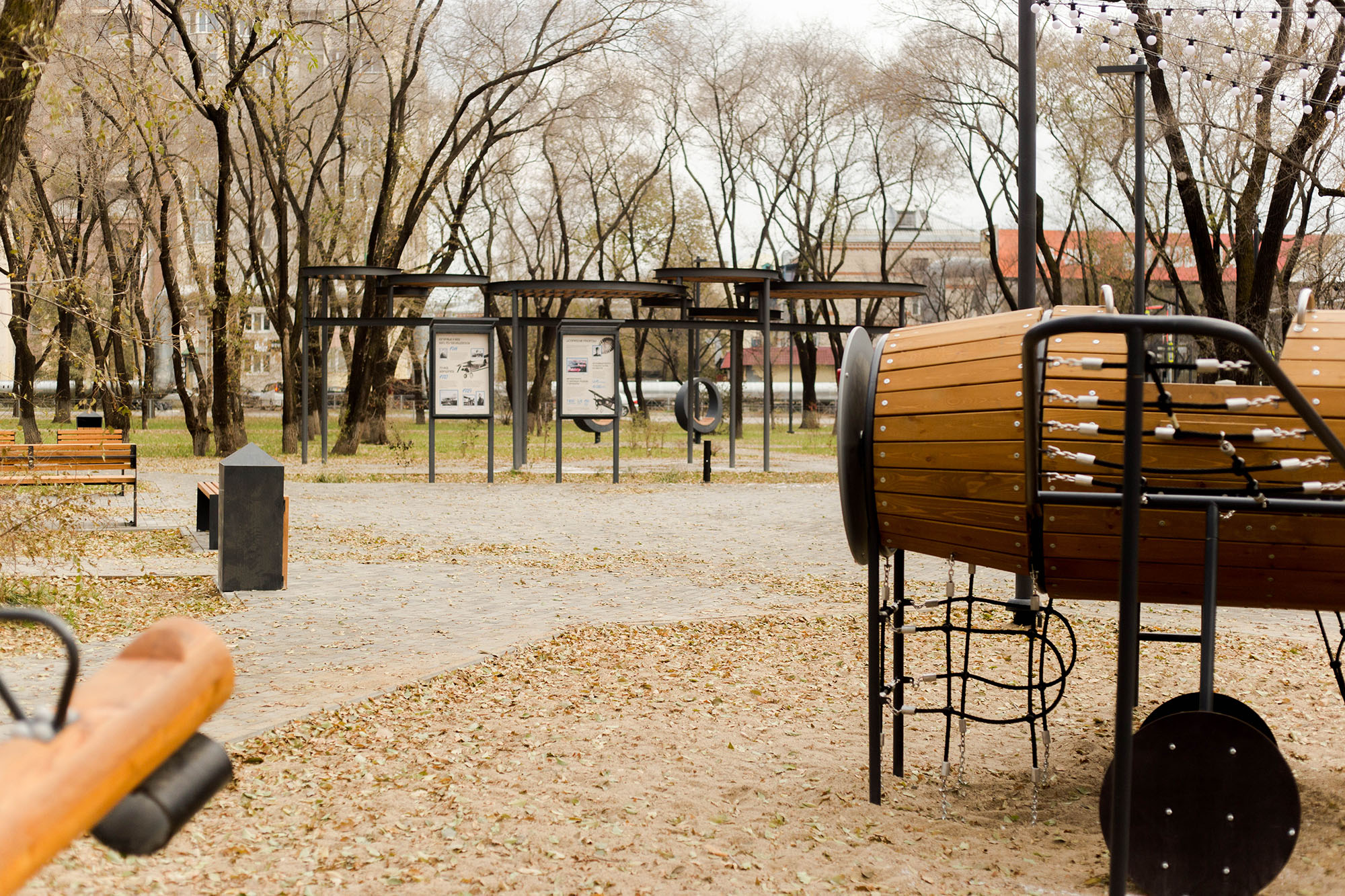 В центральном парке города Райчихинска также завершили работы по реализации конкурсного проекта. Перезапуск пространства провели под девизом «Центральный парк для города угольщиков». Пространство дополнили новыми активностями и функциональными зонами: детской площадкой с качелями в виде угольного крана, зоной для игры в шахматы, скейт-парком, танцплощадкой и другими объектами.