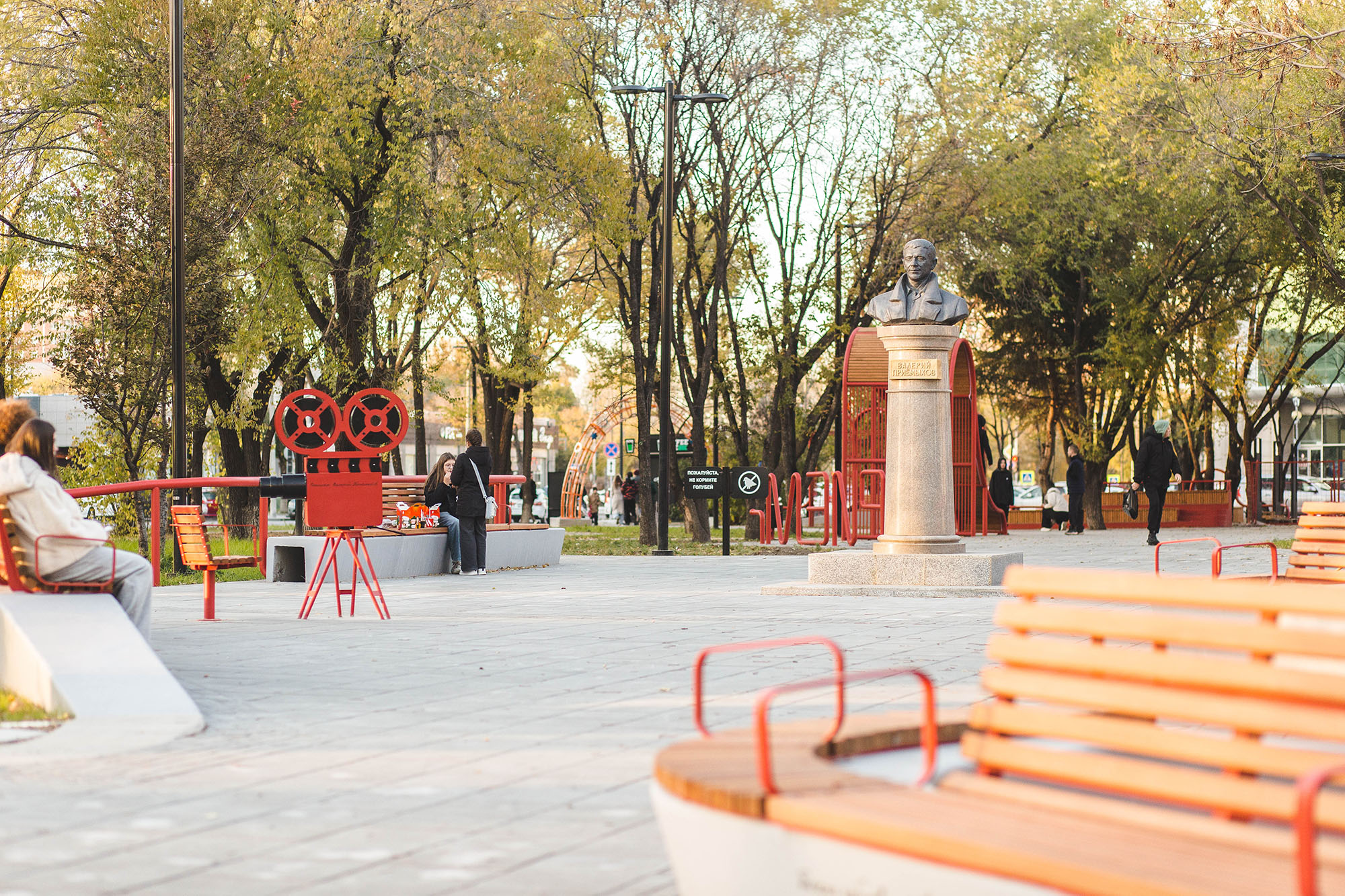 В течение двух строительных сезонов в Благовещенске шла реновация сквера имени актера, режиссера и сценариста Валерия Приёмыхова. Пространство сделали тематическим, посвященным теме кинематографа. На территории оборудовали кинотеатр под открытым небом, зону коворкинга, прогулочный маршрут, установили павильон для кафе. Кроме того, в проект вошло благоустройство части улицы 50 лет Октября, расположенной между Амурской и Горького.