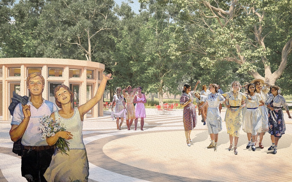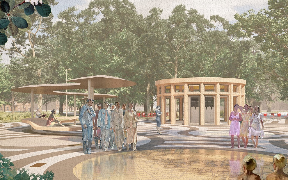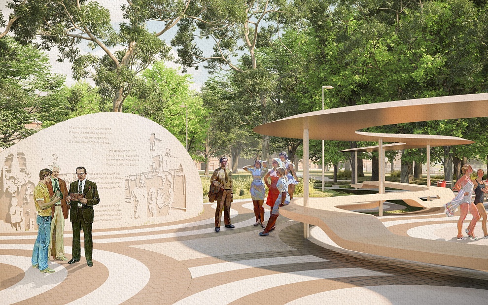 «Новый городской сквер — пространство для коммуникации горожан всех возрастов, место для работы и отдыха, знакомства с городом, а также образовательная площадка и место проведения камерных мероприятий», — подчеркивают авторы проекта.
