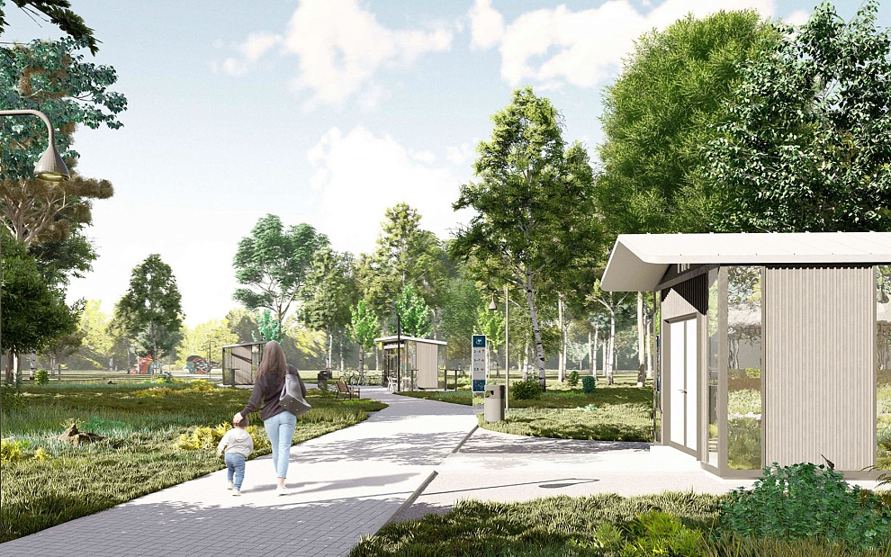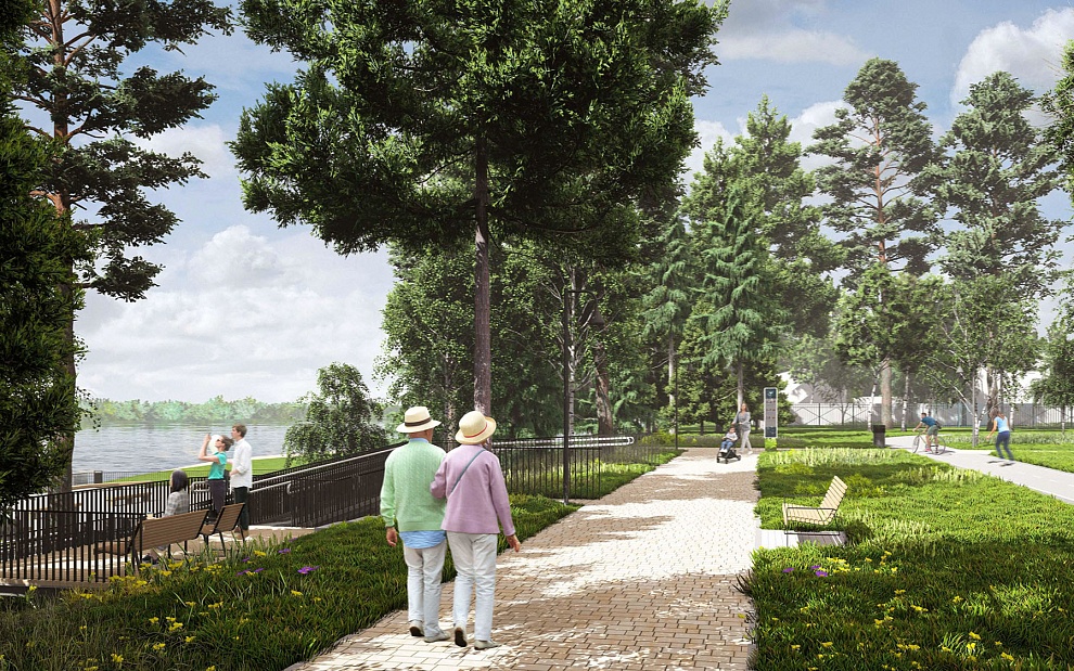 Главным пожеланием жителей было создание в парке кольцевого маршрута. Его протяженность составит 1,2 км. Кроме него на территории оборудуют еще несколько троп для тихих прогулок среди деревьев.