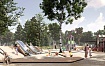 На прежнем месте останутся детская площадка и воркаут-зона. Их дополнят новыми функциями, но при этом сохранят часть оборудования. На детской площадке появятся зона активности в виде ГЭС, карусель для маломобильных детей, теневой навес с местами отдыха.