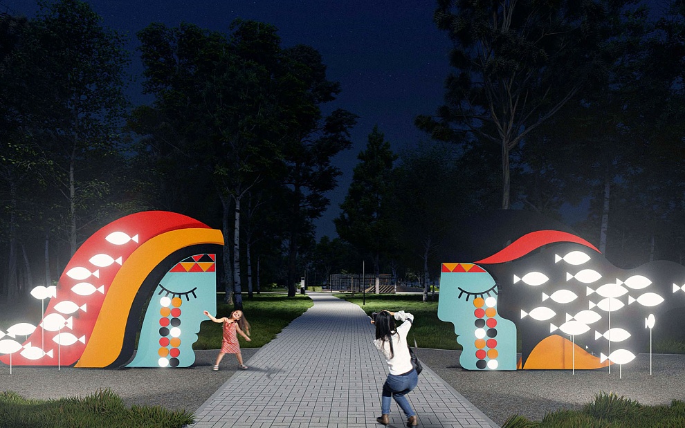 В парке используют различные отсылки к местным легендам и локальному культурному коду. Они будут прослеживаться в объектах и брендинге территории. Например, главный арт-объект парка посвятят легенде про Соктахана и Тукурингру — два хребта в истории предстают в образе разлученных влюбленных.