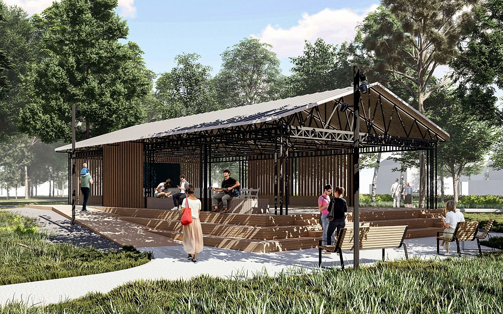 В глубине парка сделают зоны для различных видов активностей. На фундаменте существующего павильона устроят танцплощадку с амфитеатром по периметру.