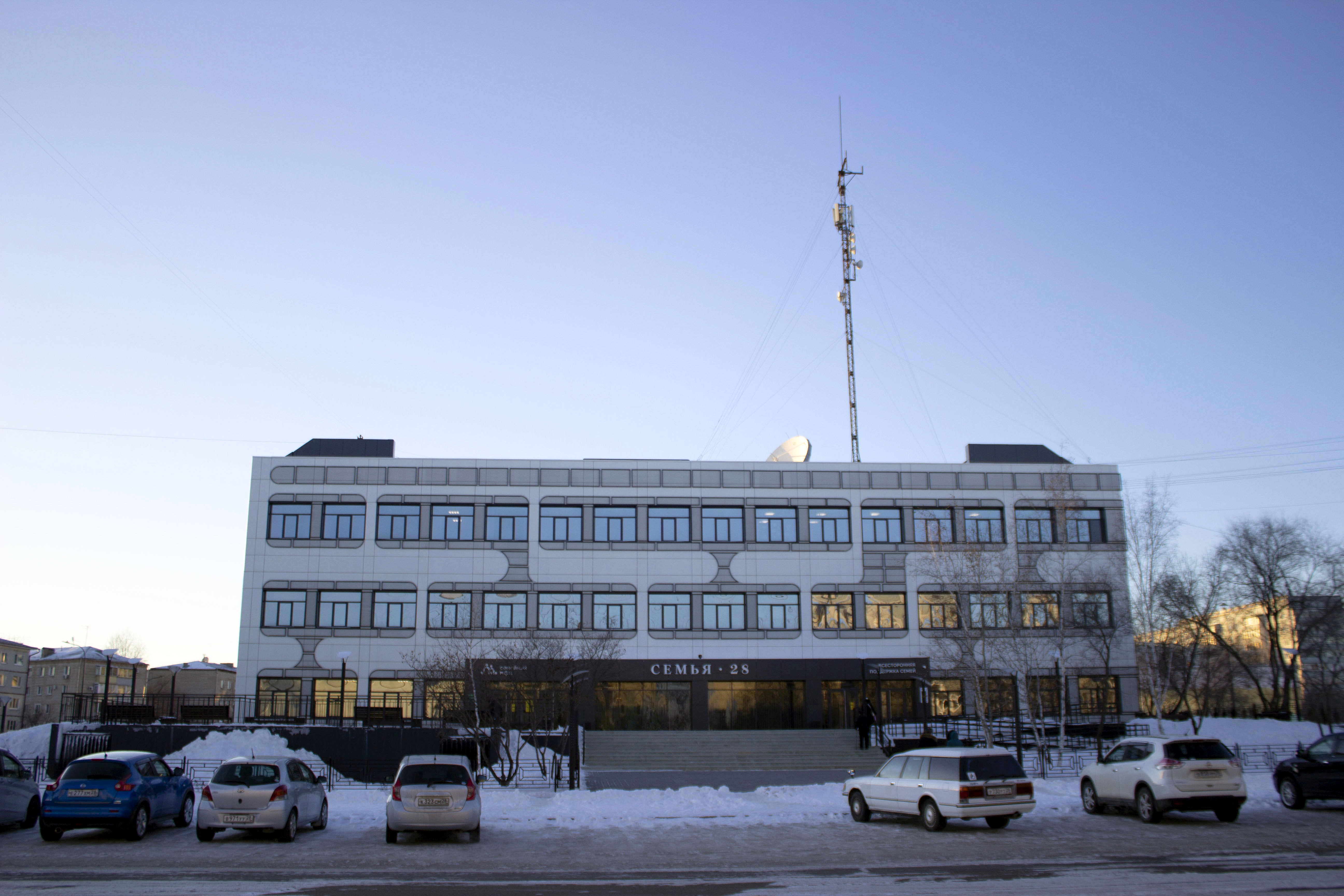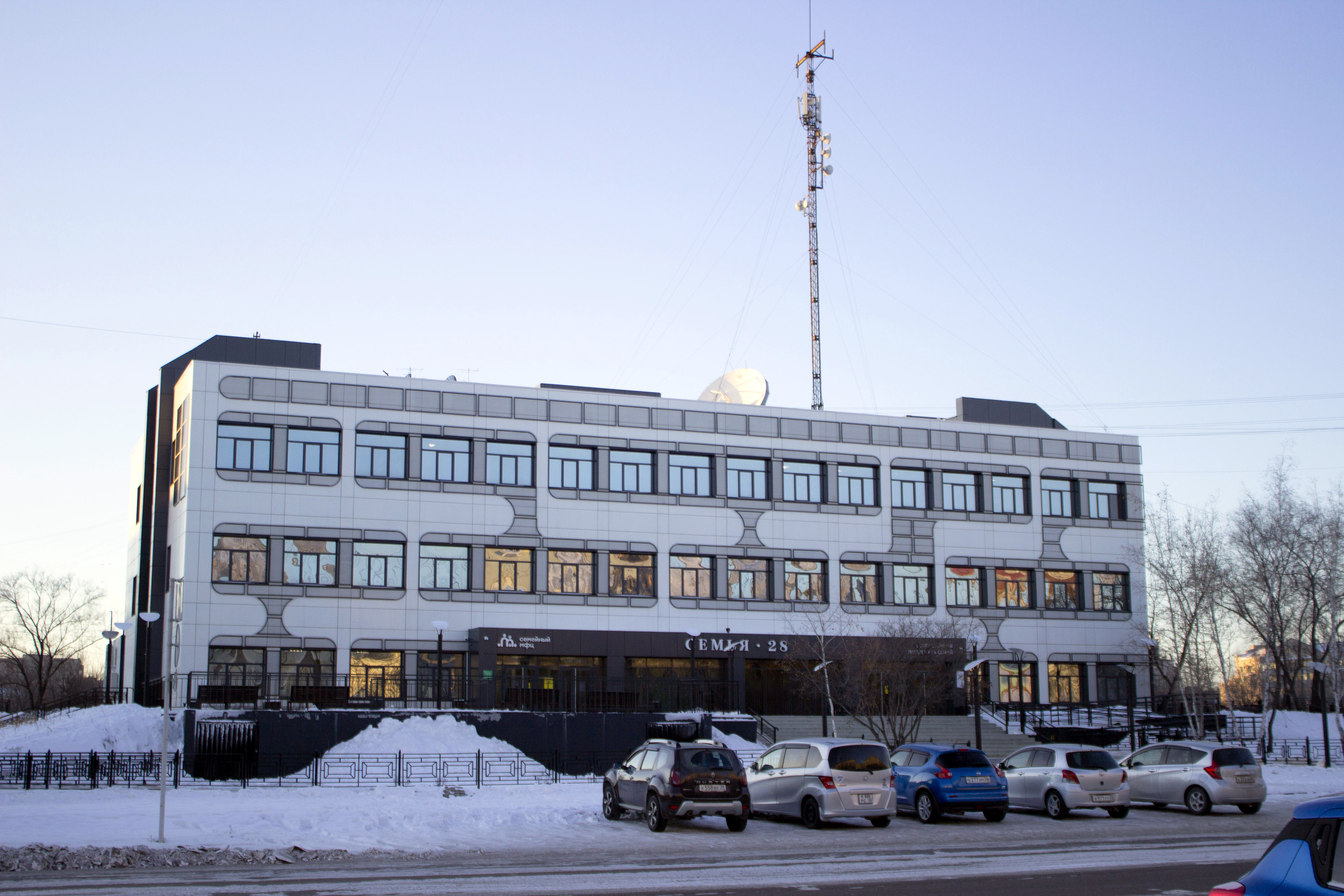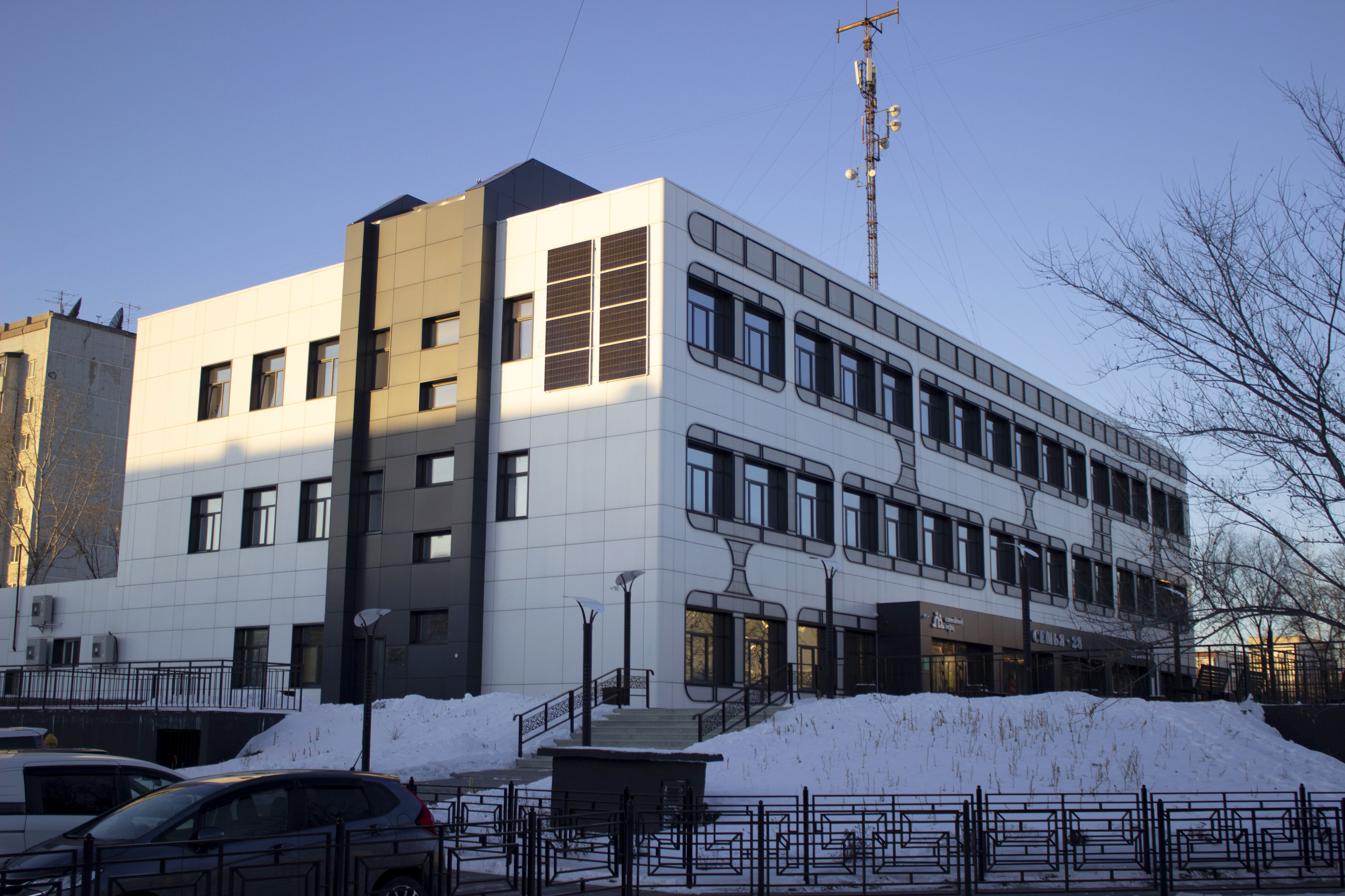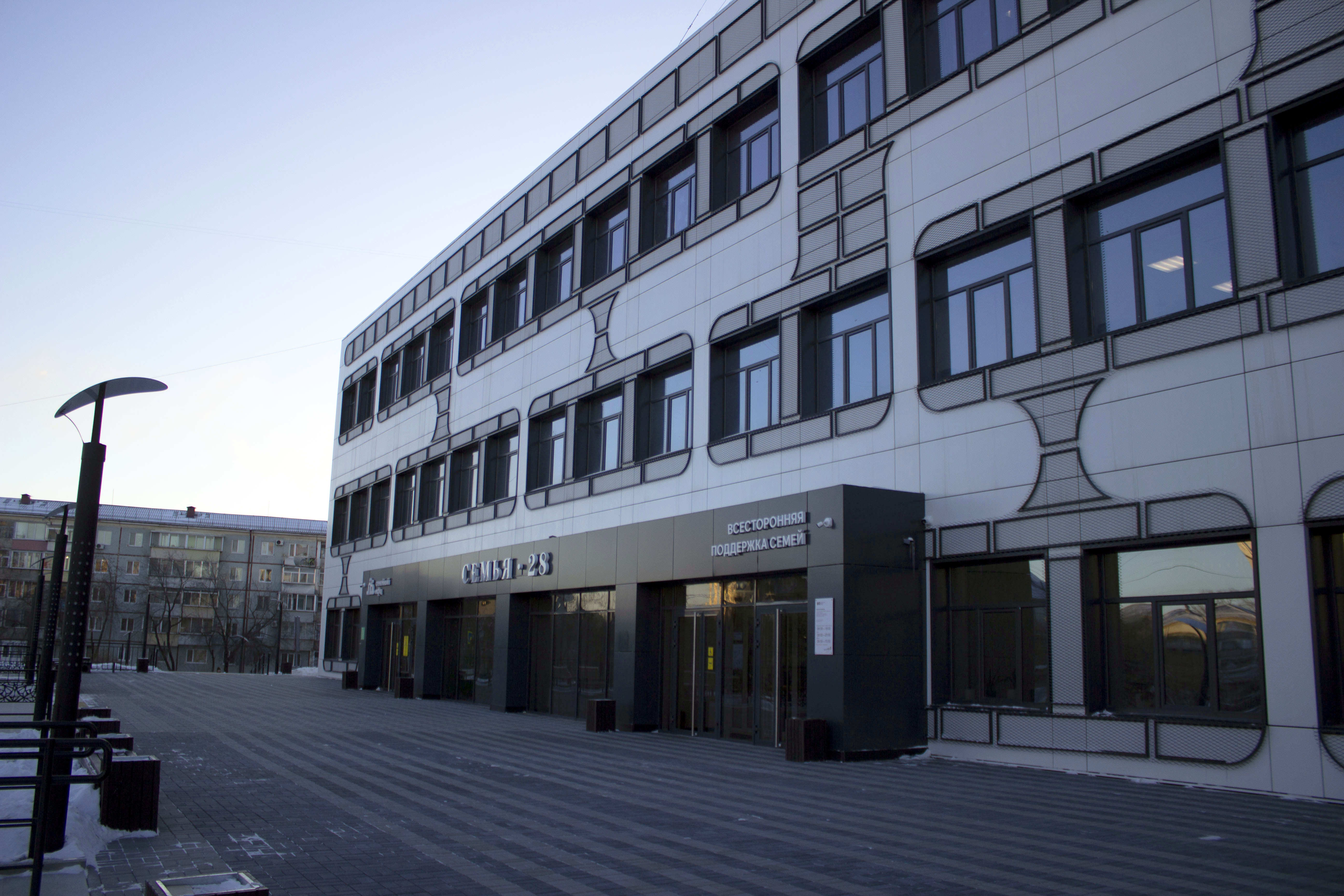 Здание в микрорайоне Благовещенска предложили обшить фасадными панелями. Главными акцентным элементом стала металлическая просечно-вытяжная сетка, с помощью которой оформили оконные проемы. Сложившийся на фасаде паттерн должен был отсылать к образу электронной печатной платы и подчеркивать тем самым назначение здания. По изначальным планам одними из резидентов здания должны были стать детский технопарк и региональные структуры в сфере цифрового развития и связи.