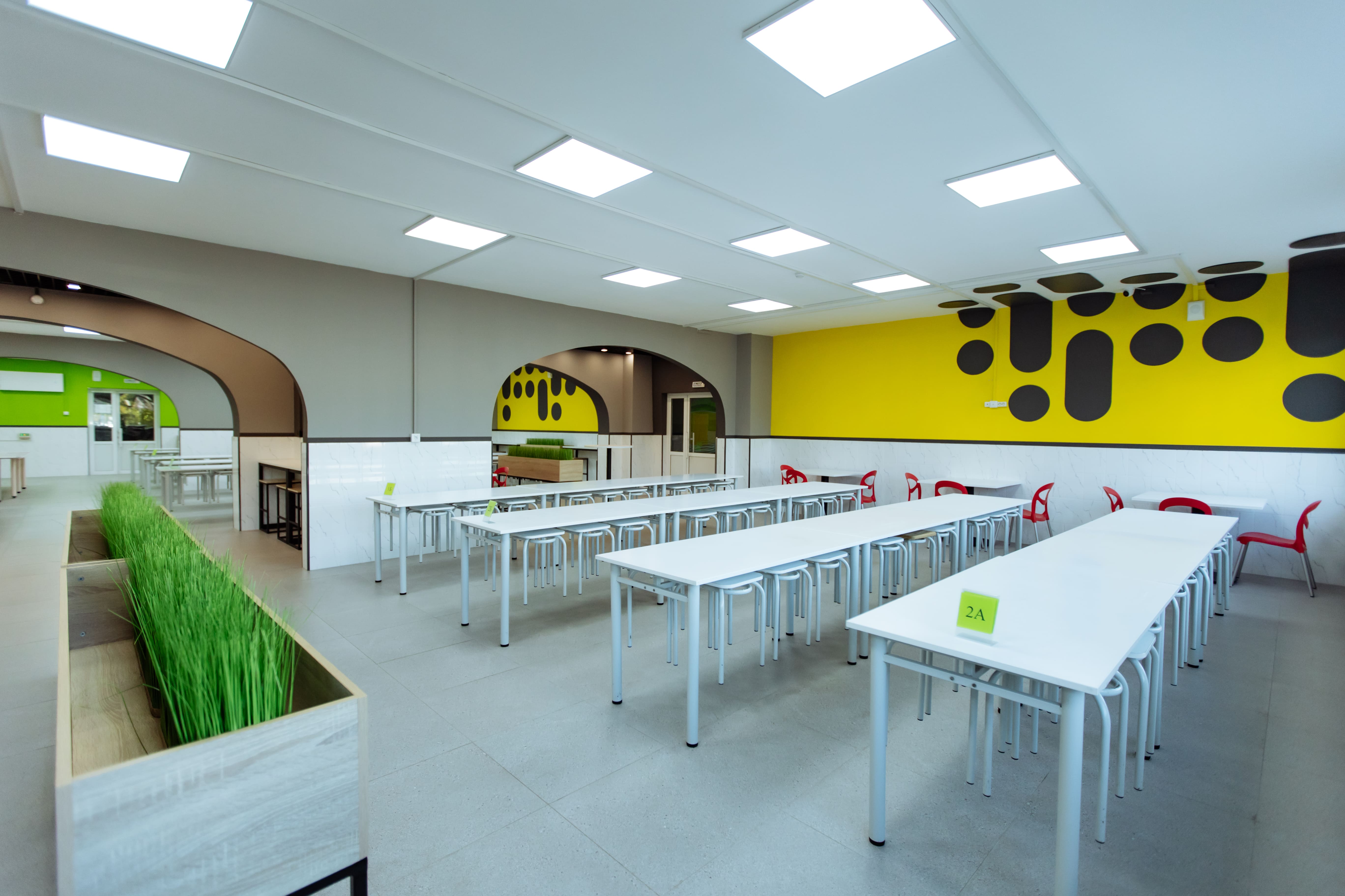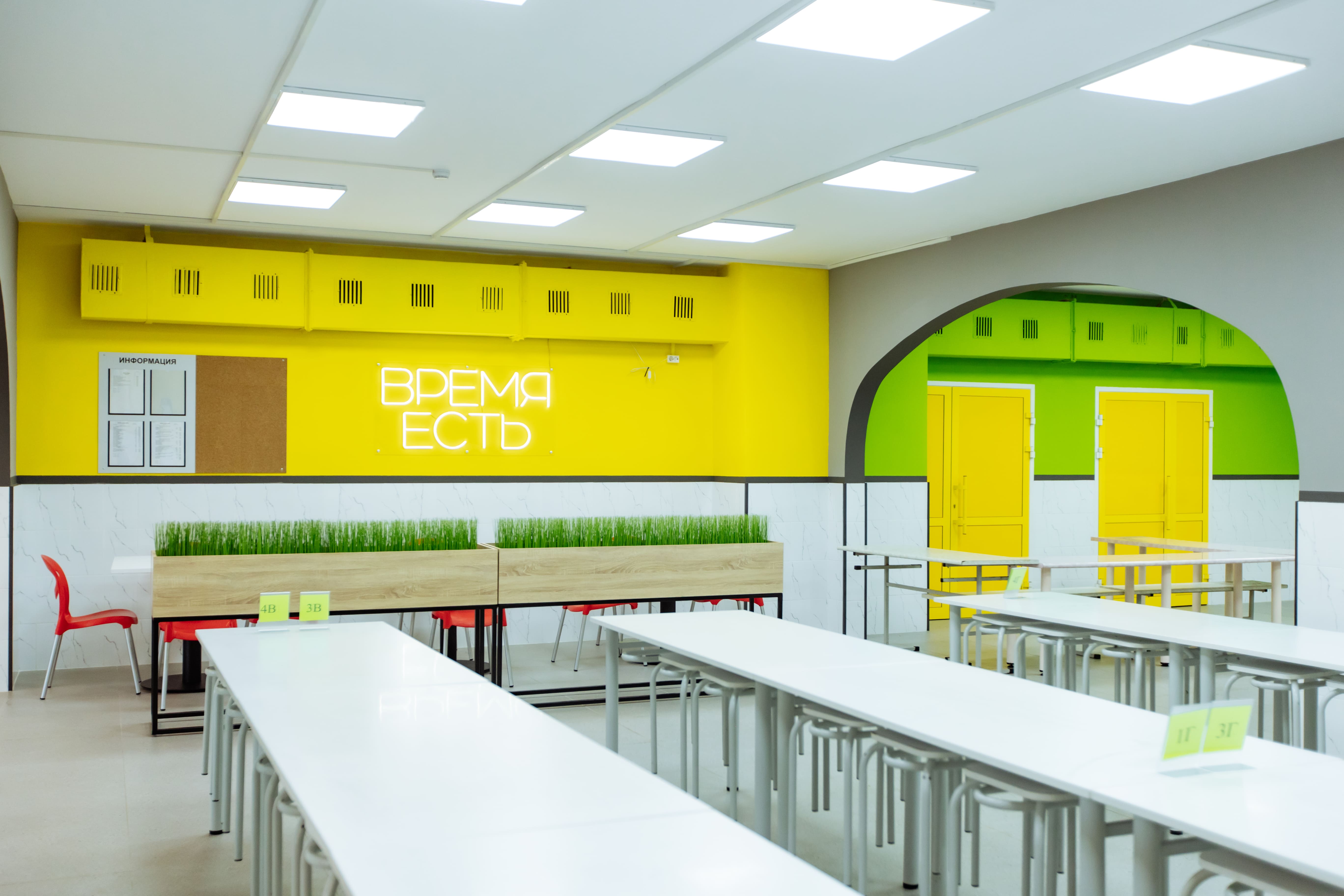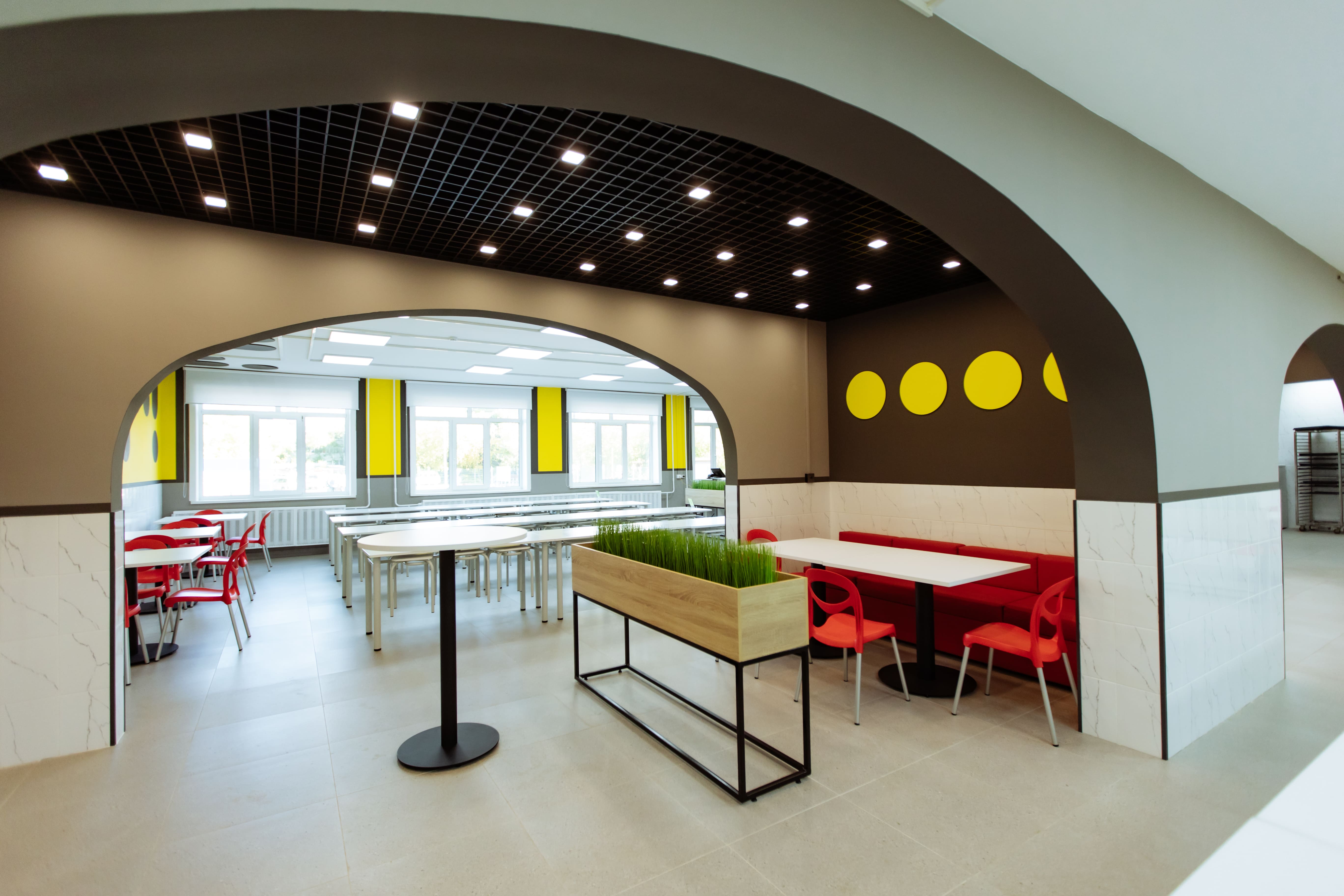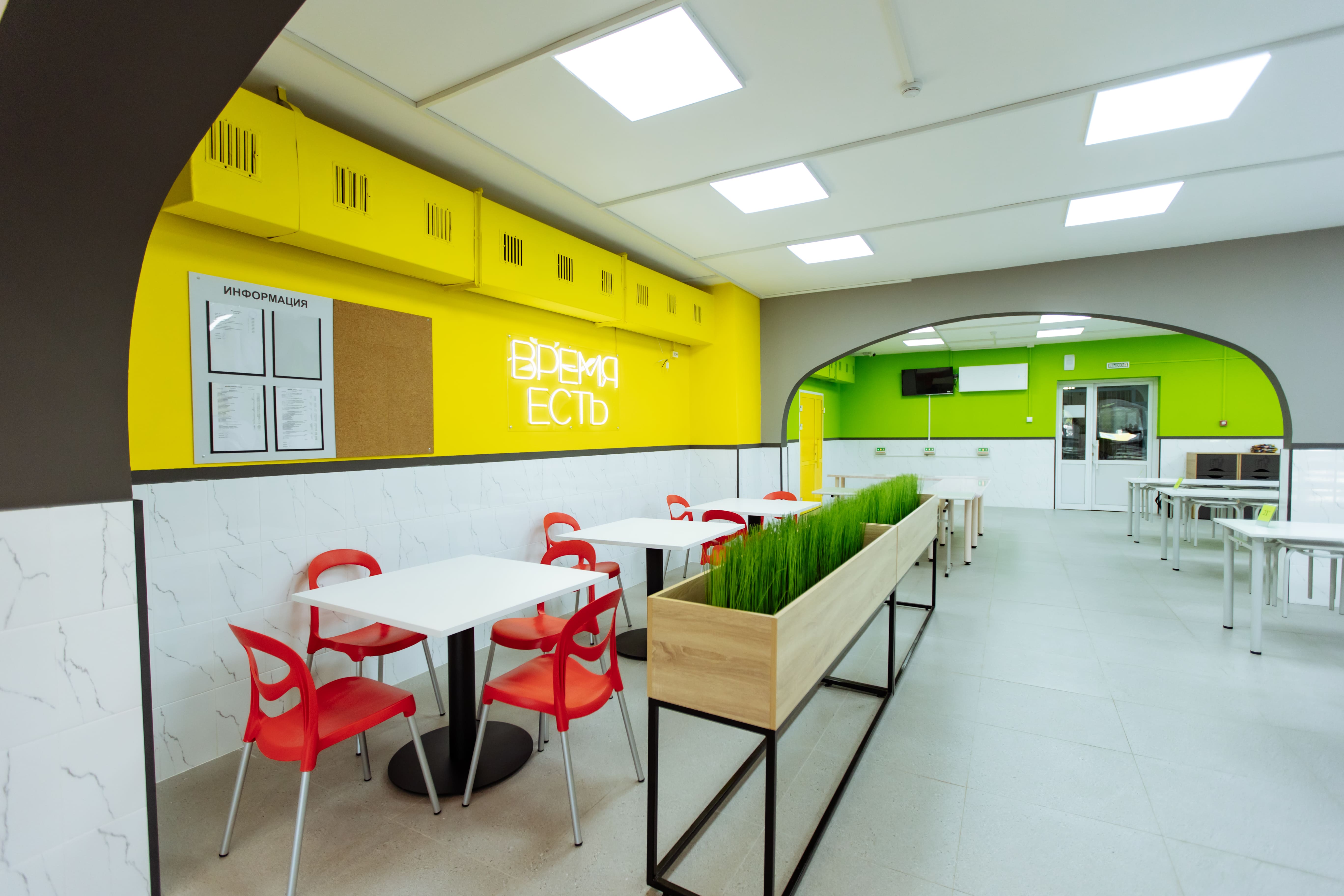 — Пространство столовой имеет общую площадь 264,76 «квадрата». Оно предназначалось для организации питания учащихся всех возрастных групп, а также педагогического состава. Кроме того, в столовой ученики проводят перемены, отдыхают и общаются, — рассказала руководитель проекта отдела дизайна интерьеров социальных и общественных зданий Елена Хоружева. — Школьное кафе своей атмосферой и эстетикой должно прививать детям позитивное и осознанное отношение к еде, формировать культуру питания.