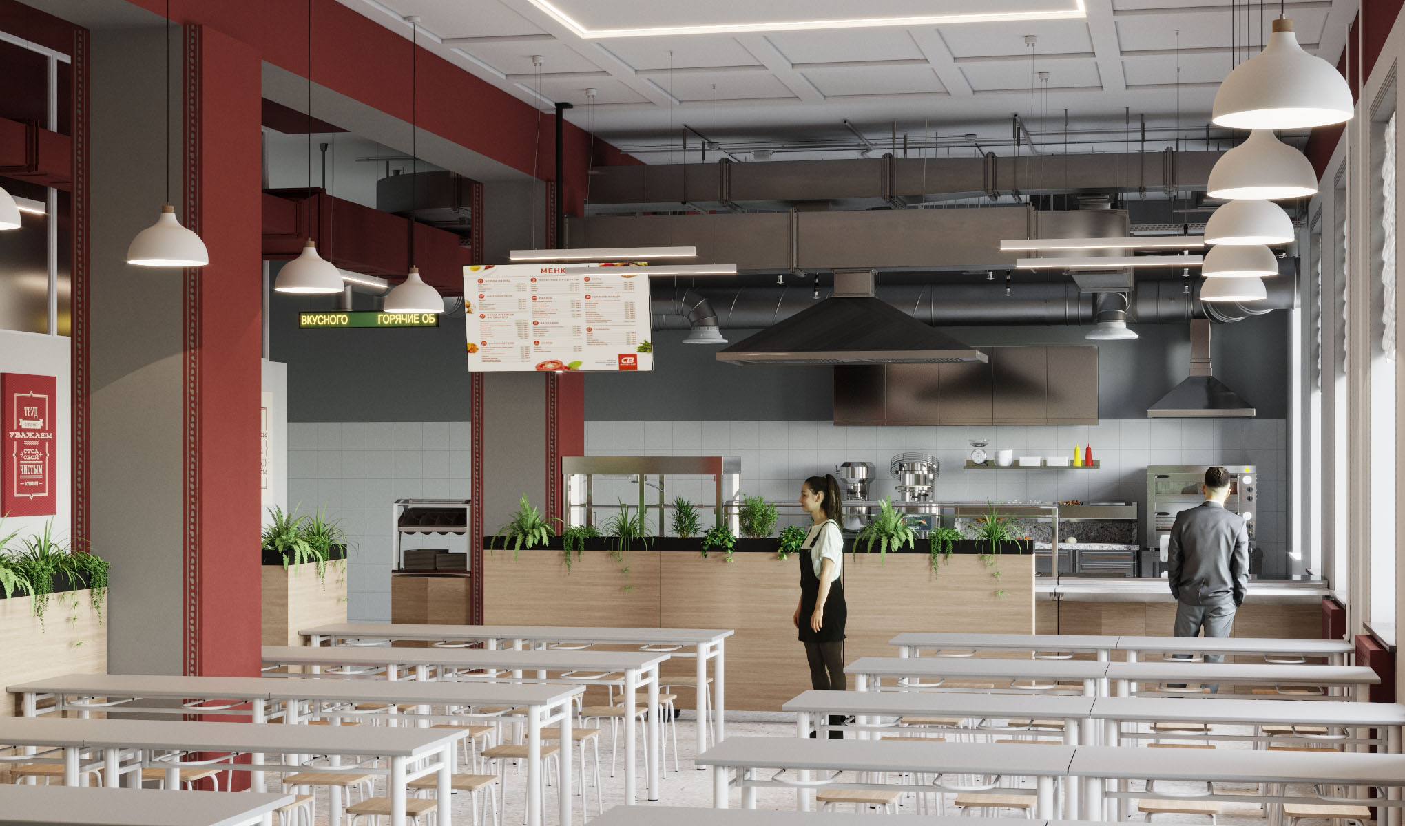 104 посадочных места предусмотрено в проекте столовой
