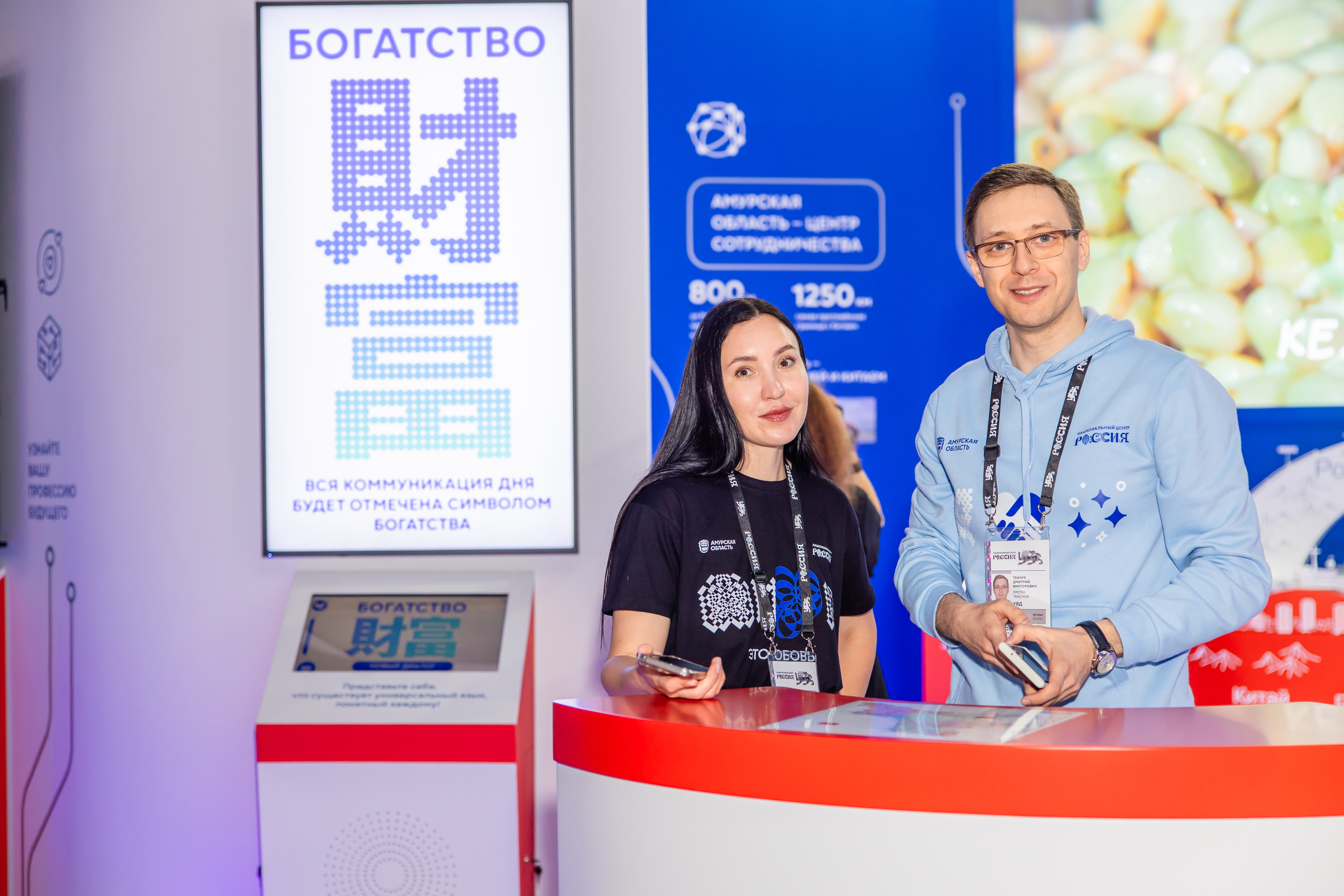 Стенд знакомит с возможностями обучения в Амурской области и рассказывает об образовательных учреждениях региона. Посетители могут узнать свою профессию будущего и отправить сообщение на универсальном языке «Амур», понятном как в России, так и в Китае.