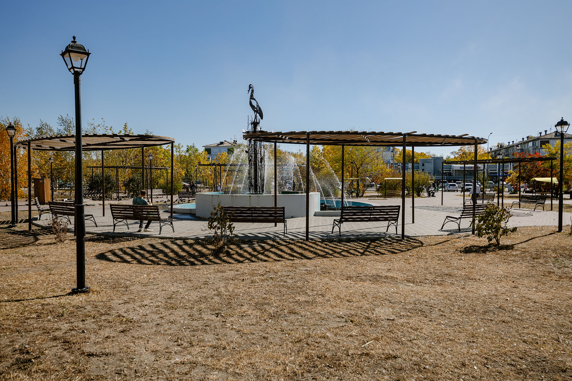 Сохранение символа места. Одной из точек притяжения на территории был фонтан с чашей. Архитекторы предложили несколько вариантов его трансформации. В финале выбор остановили на технической модернизации фонтана и сохранении его основного декоративного элемента — фигуры аиста.