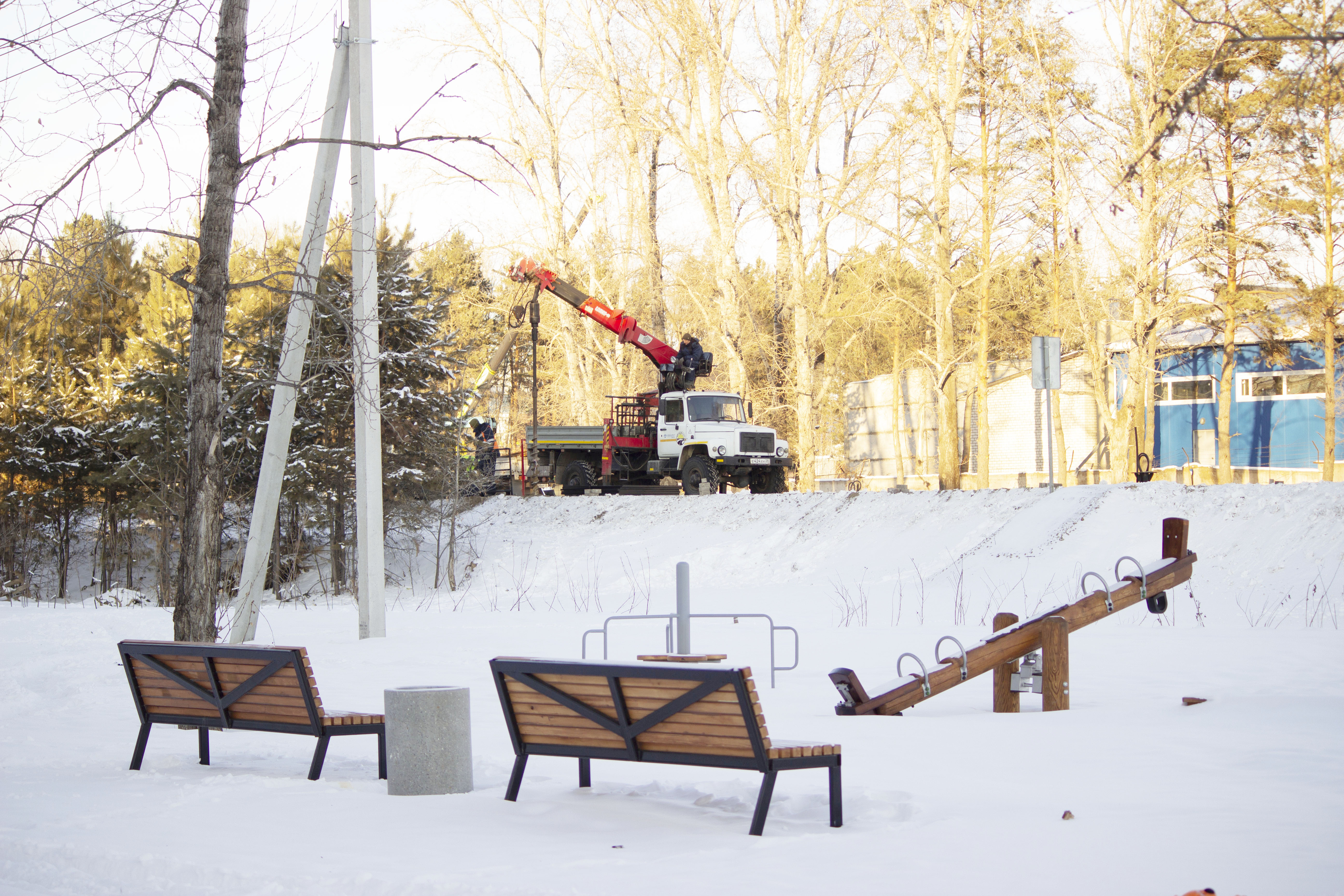 Две небольшие зоны отдыха обустроили в части сквера, расположенной у дома по адресу поселок Аэропорт, 2.